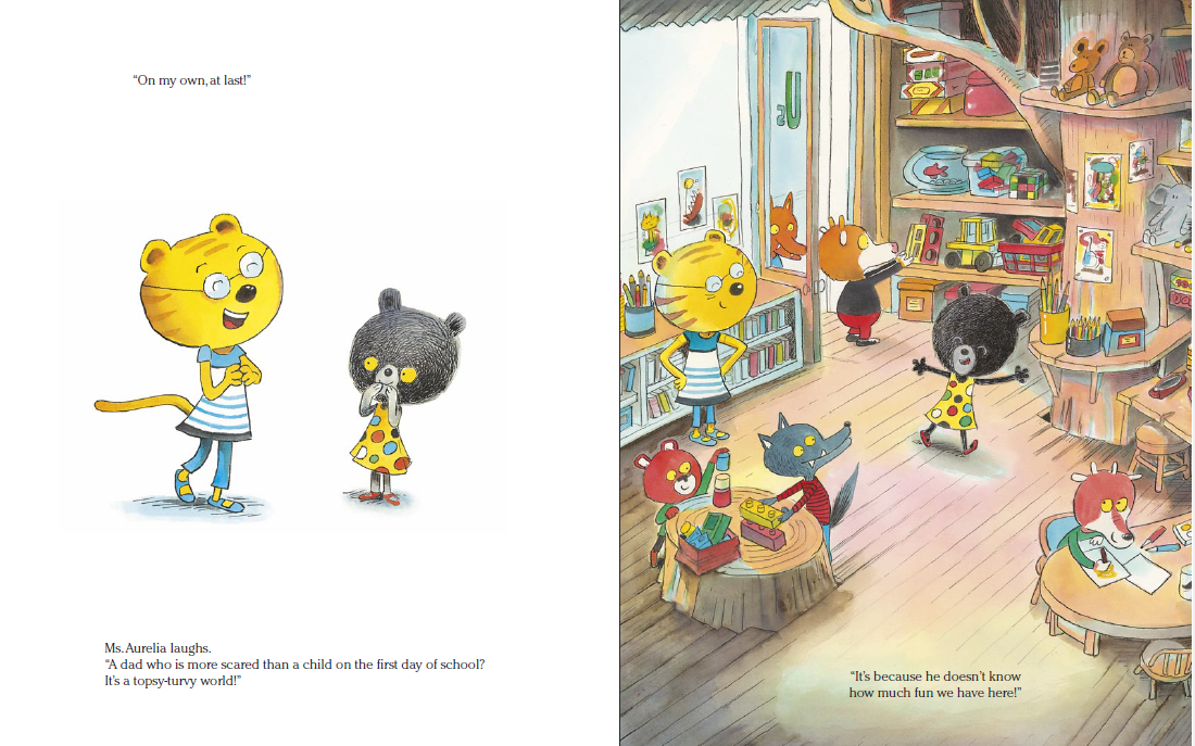 오늘은 중요한 날이에요. 제가 처음으로 학교에 가는 날이거든요. 그런데 정작 걱정하는 사람은 제가 아니라… 아빠에요. 아빠는 걱정하느라 한숨도 못자고, 아침에는 아무것도 먹지 못하셨어요. 아빠의 걱정을 끝이 없어요. 그래서 제가 모든 게 잘 될 거라고 약속하며, 아빠를 안심시켰어요. 결국, 첫 등교는 멋진 모험이 될 테니까요, 저에게도 아빠에게도!