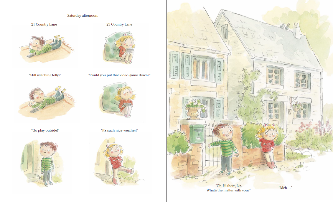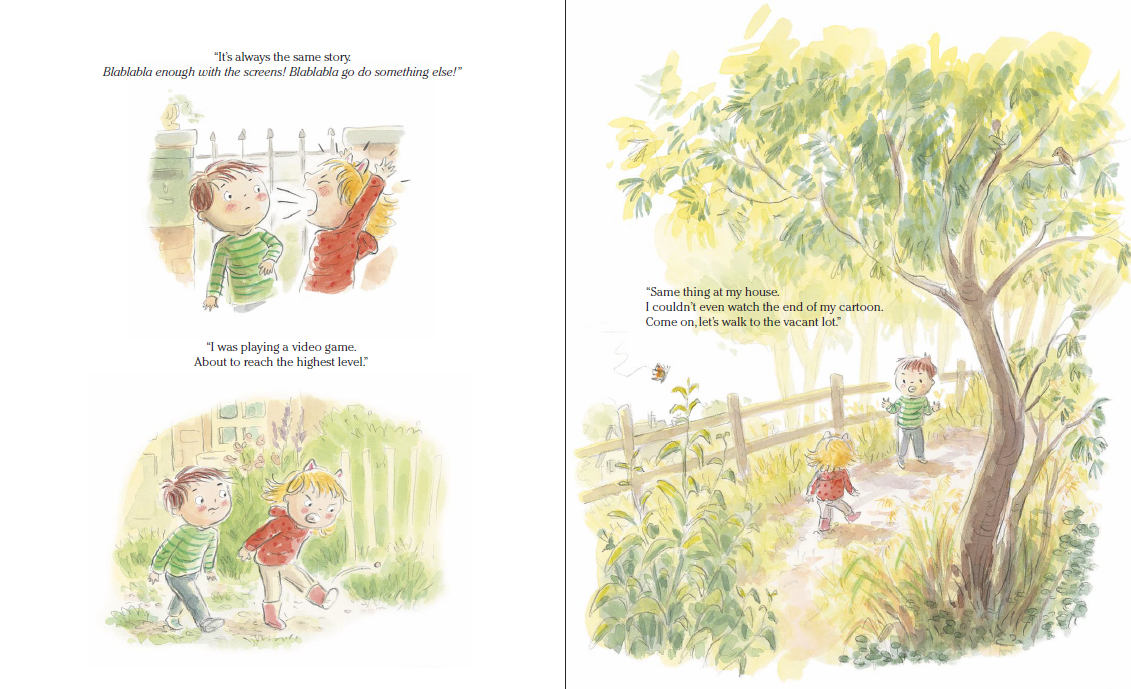 스크린에서 벗어나 야외에서 노는 것의 즐거움과 예상치 못한 모험을 통해 얻는 기쁨에 관한 이야기를 통해, 어린이들이 밖으로 나가 시간을 보내고, 창의력을 발휘하도록 이끌어요.