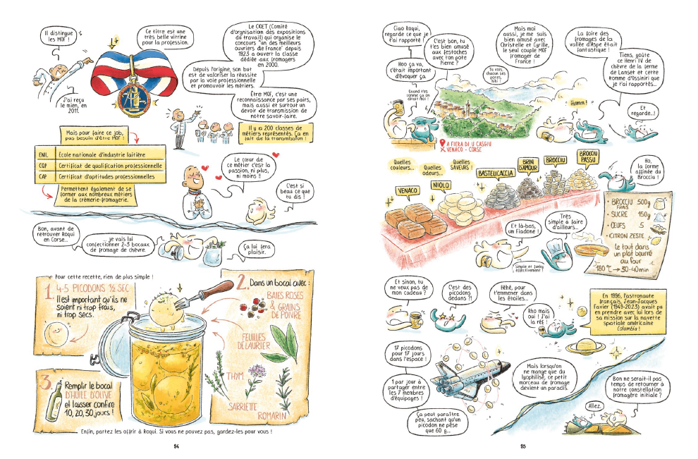 치즈 전문가(치즈 판매상, 숙성 전문가, 강사)가 집필하고 교육용 만화 전문가가 그림을 그린 이 흥미로운 만화는 세계에서 가장 사랑받는 음식 중 하나인 치즈에 대해 더 깊이 알고 싶은 모든 이들을 위한 보물창고와 같다. 이 책에서는 프랑스, 벨기에, 덴마크, 잉글랜드, 독일, 그리스, 네덜란드, 아일랜드, 이탈리아, 폴란드, 포르투갈, 스페인, 스위스는 물론 알제리, 이집트, 파키스탄의 치즈까지 만나볼 수 있다.