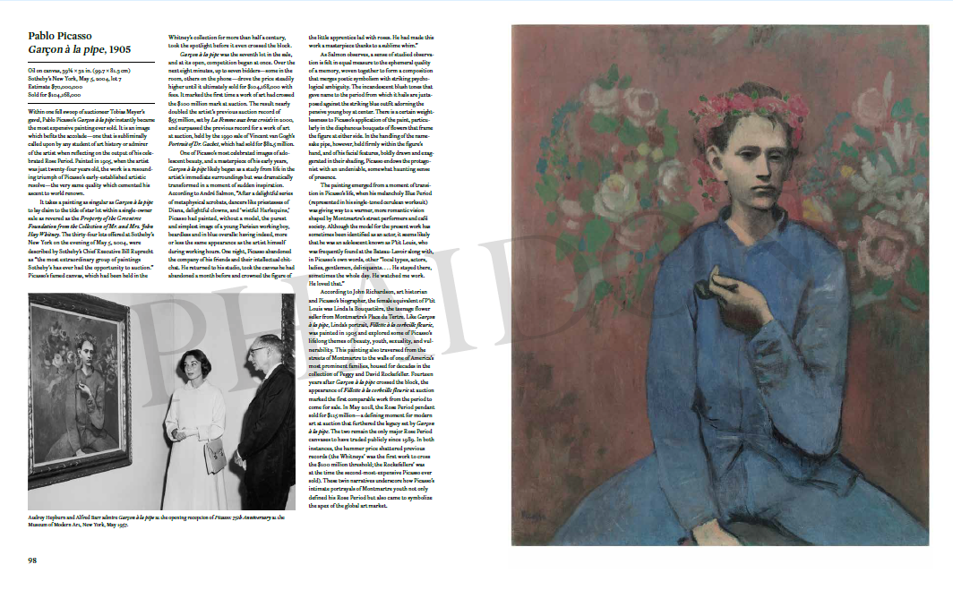 ▪️경매 역사상 가장 상징적이었던 100개 작품을 선별 ▪️각 작품의 대형 도판 + 상세 해설 + 관련 사진 + 전문가 코멘트 수록 ▪️유명 미술사·큐레이터·소더비 전문가들이 직접 집필 ▪️“왜 이것이 시대를 대표하는 아이콘인가?”라는 질문에 대한 답 제공 ▪️2025년 소더비의 뉴욕 브로이어 빌딩 귀환을 기념하는 대표 출간물