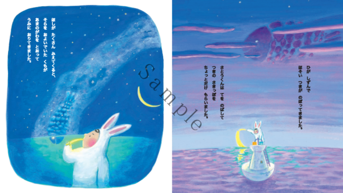 토끼소년은 연못에 비친 달을 먹어보기도 하고,밀짚모자의 구멍 너머로 바다를 바라보기도 하며,비를 묶어보기도 하는—