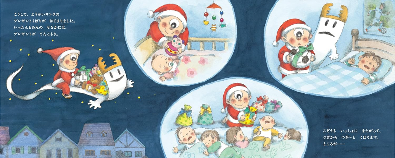 곧 크리스마스입니다.사람들이 잠든 사이, 외눈박이 아이 요괴는 산타클로스를 만나게 됩니다.