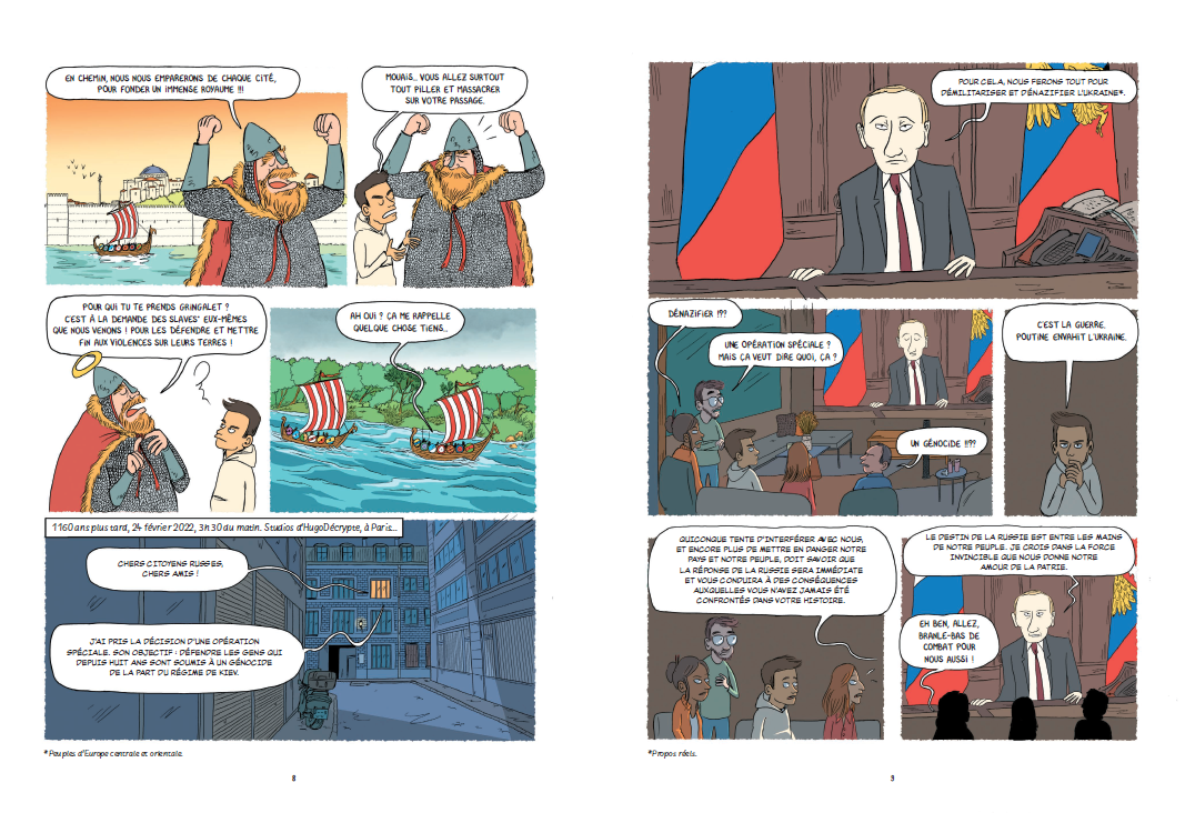 휴고데크립트는 세계 최대 규모의 국가의 역사를 탐구하여 현안을 더 잘 이해할 수 있도록 하는 가치있는 서비스를 제공한다. 이 그래픽 노블은 만 13세 이상 독자에게 적합하다. [...] 영상이든 만화든 매체에 관계없이 휴고 데크립트는 동일한 목표를 추구한다: 시사 문제를 다루고 정보를 폭넓은 대중, 특히 젊은 세대에게 쉽게 전달하는 것이다. 그리고 이 그래픽 노블을 통해 그는 주요 주제를 더 깊이 있게 탐구한다. 그는 9세기 기원부터 러시아 역사를 조명함으로써 독자들이 현재 상황과 우크라이나 전쟁을 더 잘 이해할 수 있도록 돕는다. ー Le Figaro