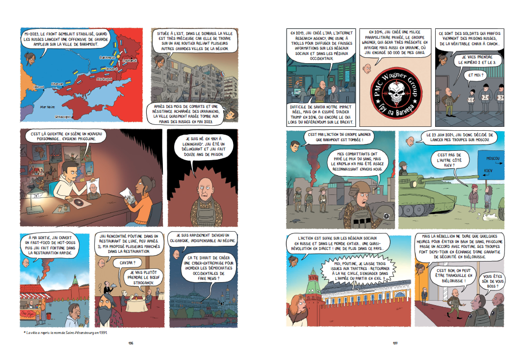 휴고는 팀 소속 기자 이브와 함께 9세기 루스 건국부터 현대에 이르기까지 러시아의 주요 역사적 인물들을 만나기 위한 여정을 시작한다. 1,000년에 걸친 모험을 통해 역사적 정확성과 대중성을 결합한 이 책은 13세부터 전연령대의 독자들이 푸틴의 사고방식을 엿보고 우크라이나 전쟁의 핵심 쟁점을 이해할 수 있도록 한다.