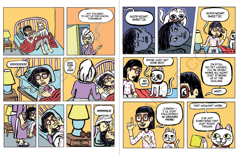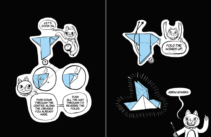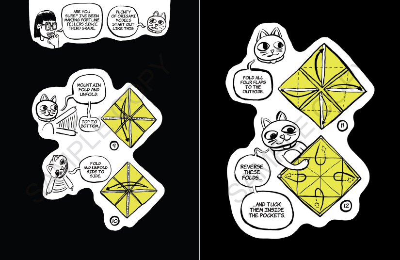 이 흥미진진한 만화는 일본 친척집을 방문한 십대 소녀 아야 와다가 강력한 고양이 신령 네코를 자신도 모르게 미국 집으로 데려오게 되는 이야기를 그려요. 각 장마다 네코가 아야의 접은 종이접기 모형에 말 그대로 생명을 불어넣어 움직이게 하며 일어나는 다음과 같은 재미난 에피소드들이 펼쳐져요.