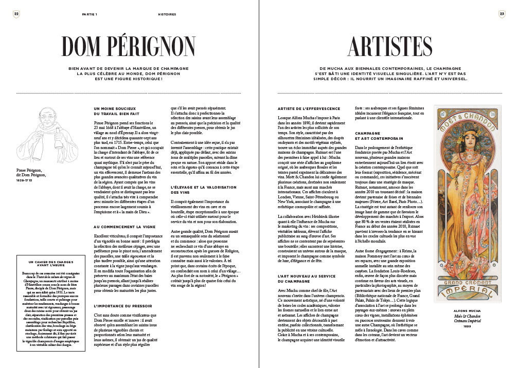 모든 디테일이 중요한 샴페인의 세계를 이해하기 위해서는 샴페인의 역사를 발견하고, 그 고유한 테루아(Terroir, 토양 및 환경)를 탐험하며, 당면 과제에 대한 이해가 필요하다. 이는 와인 재배자들의 노력에서부터 기후의 영향, 와인 양조 방식의 선택, 그리고 산업의 지형도를 다시 그리는 경제적 역동성에 이르기까지 포괄한다.