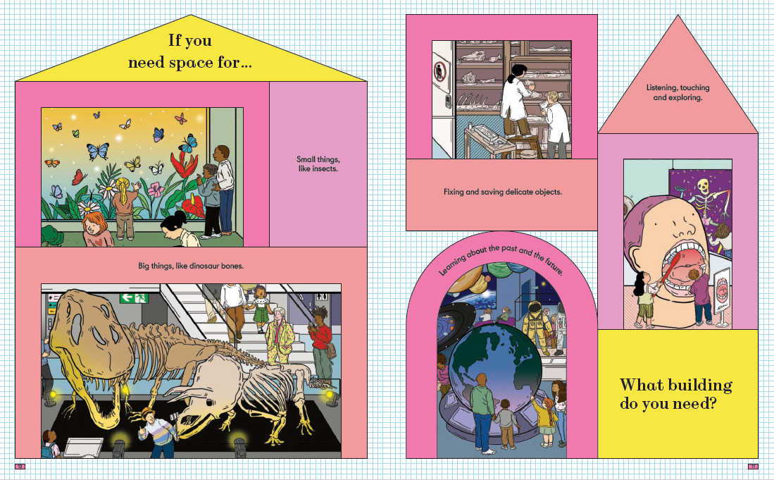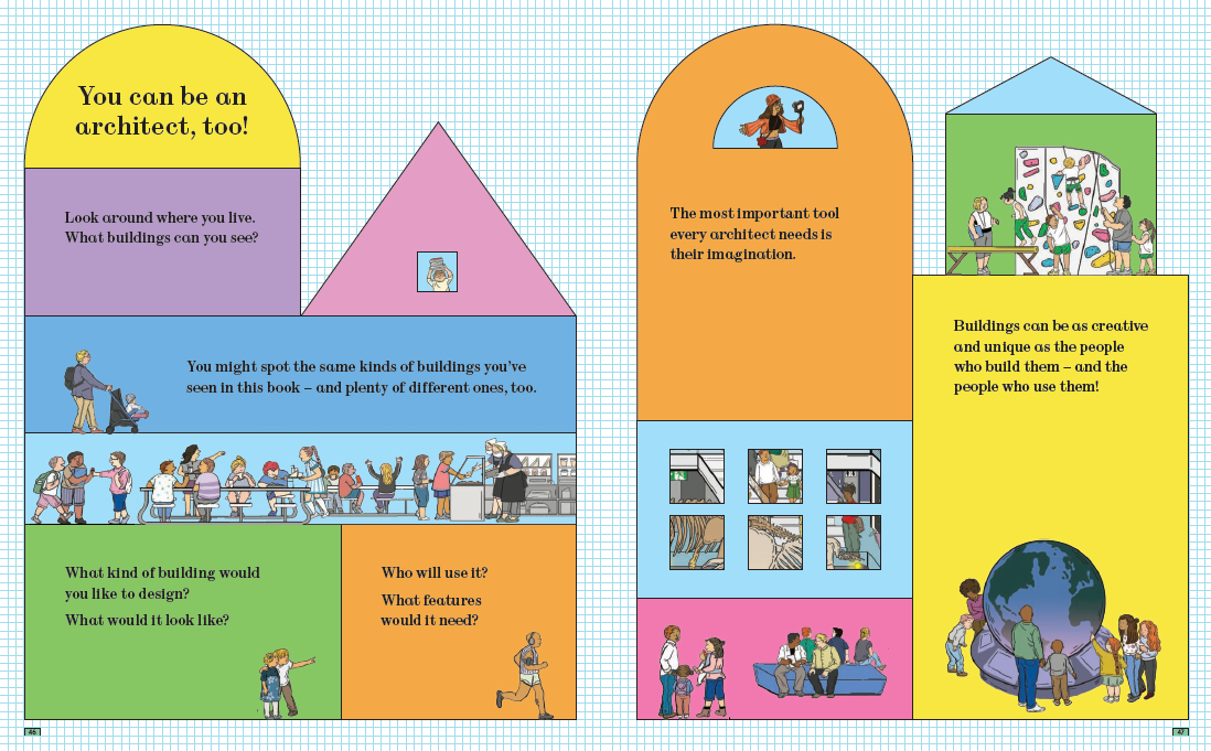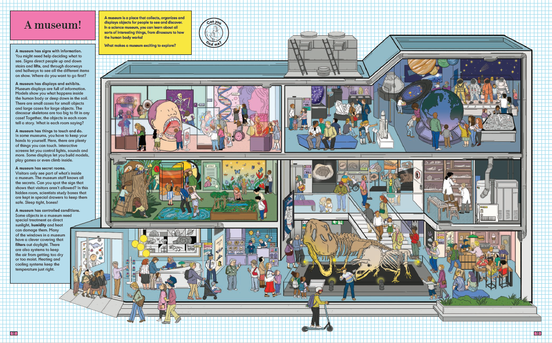 또한 돔(Dome), 에스컬레이터, 공조 시스템, 필터링 장치 등 현실적인 건축 요소들이 아이의 눈높이에 맞게 쉽게 설명되어 있어 처음 건축을 접하는 어린이도 문제없이 이해할 수 있어요.