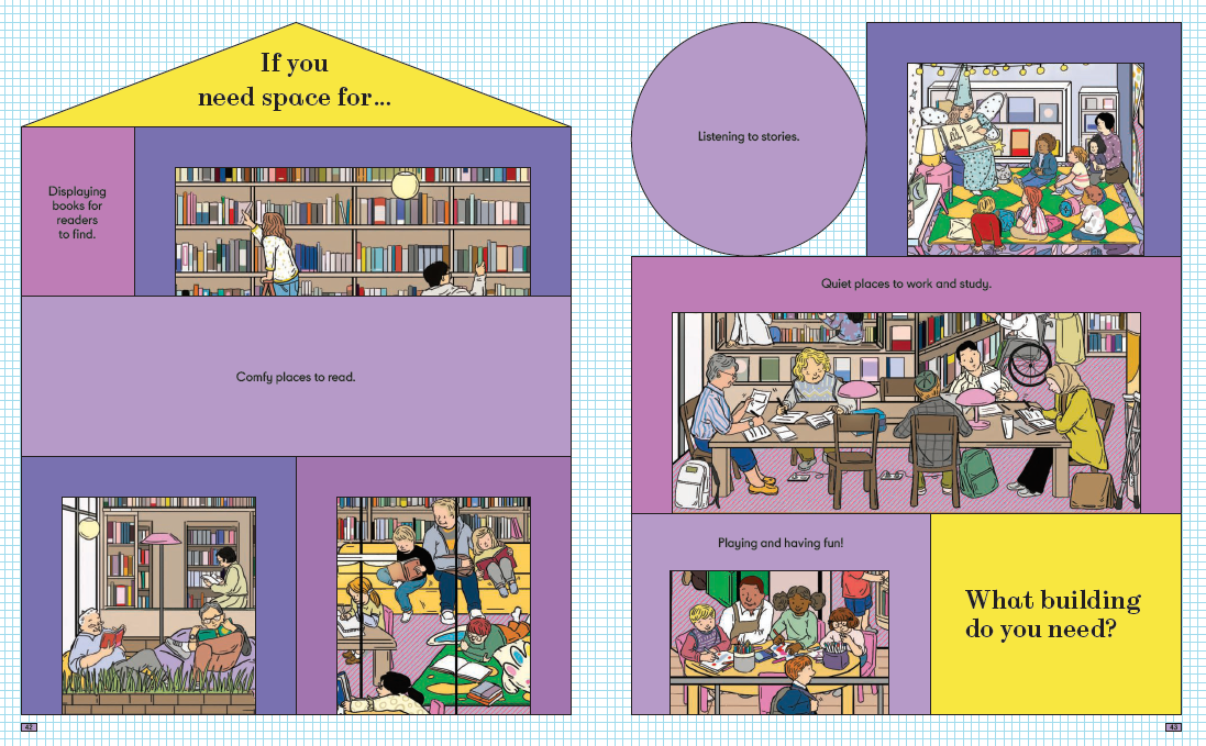 이 책은 아이들이 건축과 디자인의 세계를 놀이하듯 배우도록 만든 인터랙티브책입니다. 단서를 보고 어떤 건물인지 추리해보고, 다음 장을 넘기면 커다란 건물의 단면이 펼쳐져 건물 속이 한눈에 보이는 구조예요! 또한 각 건물에는 숨겨진 인물들이 숨어있답니다!