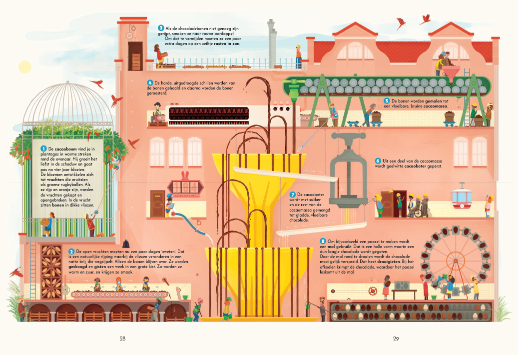 도서관에도 학교에도 책이 가득한 걸 보면, 분명 어딘가에 책을 만들어내는 ‘책 만들기 기계’가 있을 거라고 믿는 소년. 그래서 그는 톱니바퀴 하나, 신기한 부품 하나씩 모아 자신만의 책 만들기 기계를 조립하기 시작해요. 이제 레버만 당기면 새로운 책이 쏟아져 나올 거라 기대하면서요.