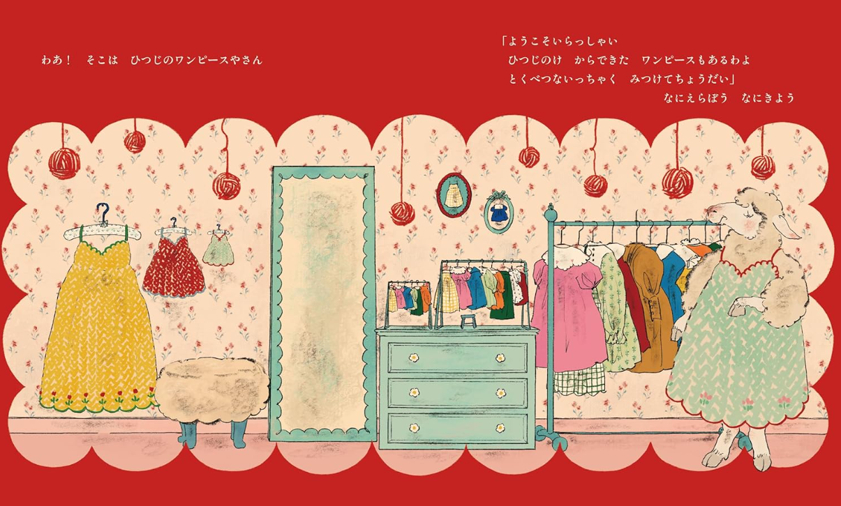 문을 지나자 양이 운영하는 원피스 가게,백조가 지키는 블라우스 가게, 토끼가 일하는 모자 가게가 펼쳐집니다.