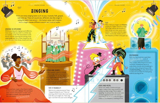 🔍각 장은 인포그래픽과 스토리텔링형 설명, 생동감 있는 일러스트로 구성되어 있어, 복잡한 음향 과학 개념도 직관적으로 이해할 수 있습니다. 교과 연계(영국 KS2 커리큘럼- 한국 초등 4-5학년)에 적합한 과학적 정확성을 갖추면서도, 선물용 교양서로도 손색없는 완성도를 자랑합니다.