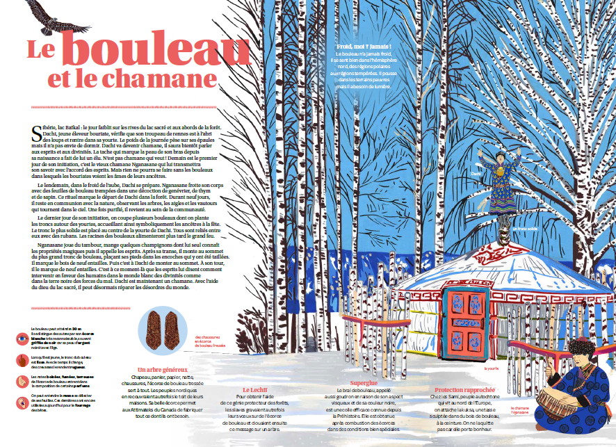 이 책은 로빈 후드의 떡갈나무부터 케찰코아틀 신화 속의 카카오 나무에 이르기까지, 인류 역사와 문화에 깊은 발자취를 남긴 20그루의 나무를 조명합니다. 각 펼침면마다 하나의 나무를 주인공으로 세워 그와 얽힌 설화, 신화, 전설 혹은 역사적 사실을 흥미롭게 풀어냅니다. 단순히 이야기에서 그치지 않고 식물학적 특징, 생태적 가치, 그리고 나무를 둘러싼 야생 동물과 환경 문제까지 폭넓은 지식을 어린이의 눈높이에 맞춰 전달합니다.