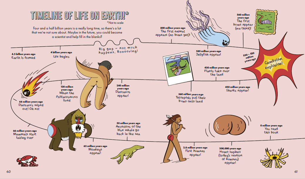 이 유쾌한 어린이용 진화 가이드에서는 큰 엉덩이, 작은 엉덩이, 냄새나는 엉덩이! 야광 엉덩이, 제트엔진 같은 엉덩이, 화석이 된 엉덩이! 심지어 엉덩이가 무려 1,000개나 되는 동물까지 만나볼 수 있어요 😎