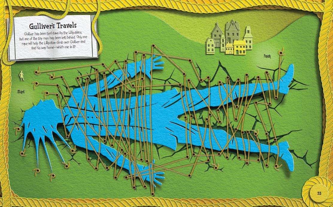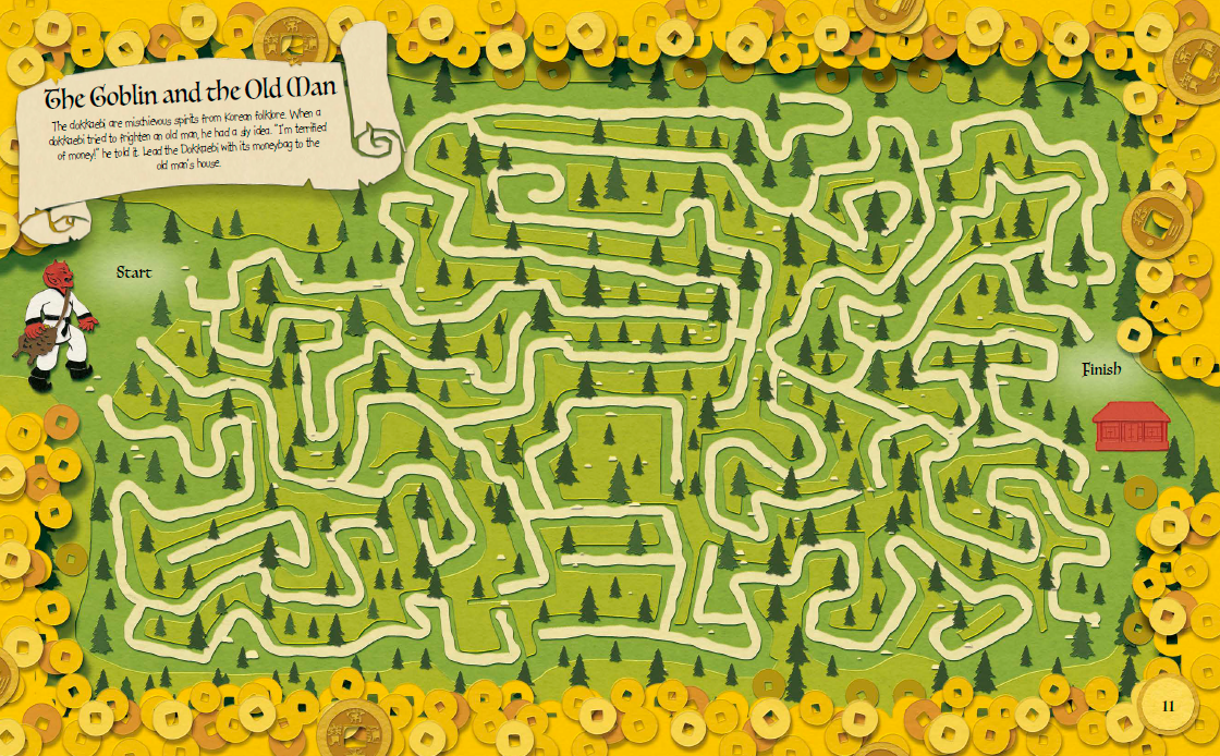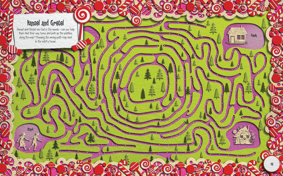 이 책은 《이상한 나라의 앨리스》, 《오즈의 마법사》, 《보물섬》 등 전 세계 아이들에게 가장 사랑받는 28가지 고전 명작과 전래 동화를 테마로 한 미로 퍼즐북입니다. 독자는 오즈의 마법사의 노란 벽돌길에서 도로시를 에메랄드 시티로 안내하고, 보물섬에서는 롱 존 실버와 해적들이 보물에 도달하도록 길을 찾아야 합니다.