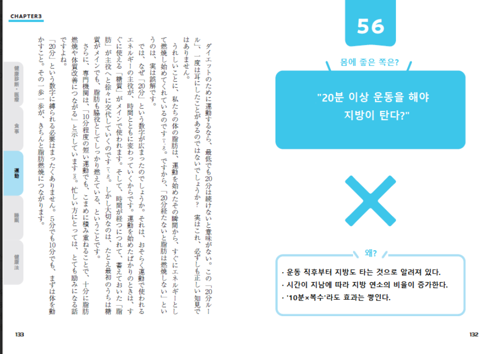 다루는 주제도 건강검진, 식사, 운동, 수면, 건강법이라는 범용적인 주제로 구성되어 있어