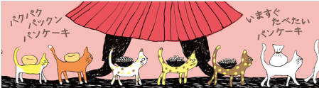 정성껏 구워낸 폭신폭신한 팬케이크 100장을 소녀는 혼자서 꿀꺽 다 먹어 치우고 대만족하지만... 어라? 옆에서 도와준 고양이들은 지금 무얼 하고 있을까요?