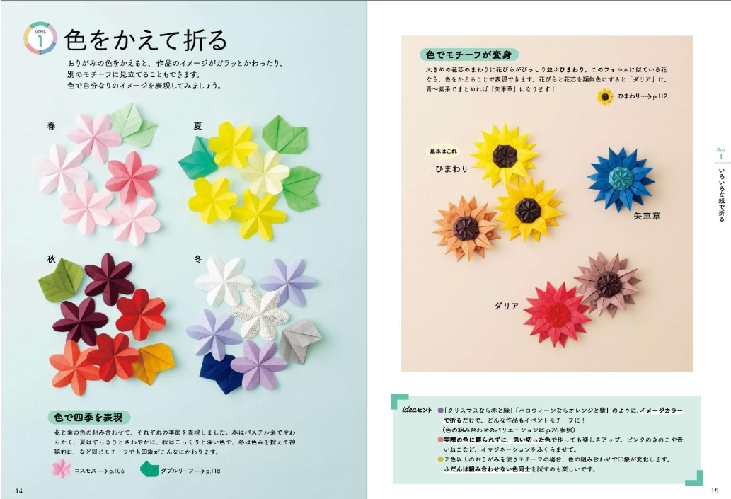 "다 접은 종이접기, 그다음엔 무얼 할까?" 고민하는 분들, 그리고 나만의 오리지널 작품을 꿈꾸는 분들을 위한 최고의 가이드북입니다. 꽃과 식물, 귀여운 동물부터 계절 모티프, 패션 소품, 달콤한 디저트까지!
