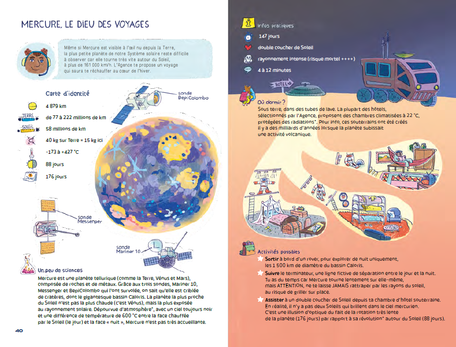 이 책은 어린 독자들을 꿈같은 우주 탐험의 세계로 초대합니다. 본격적인 여행에 앞서, 본문의 과학적 정보는 정확한 사실에 근거하되 여행 방식이나 숙박 시설에 대한 묘사는 상상력의 산물임을 명확히 짚어줌으로써 아이들이 픽션과 현실을 혼동하지 않고 몰입할 수 있게 돕습니다.