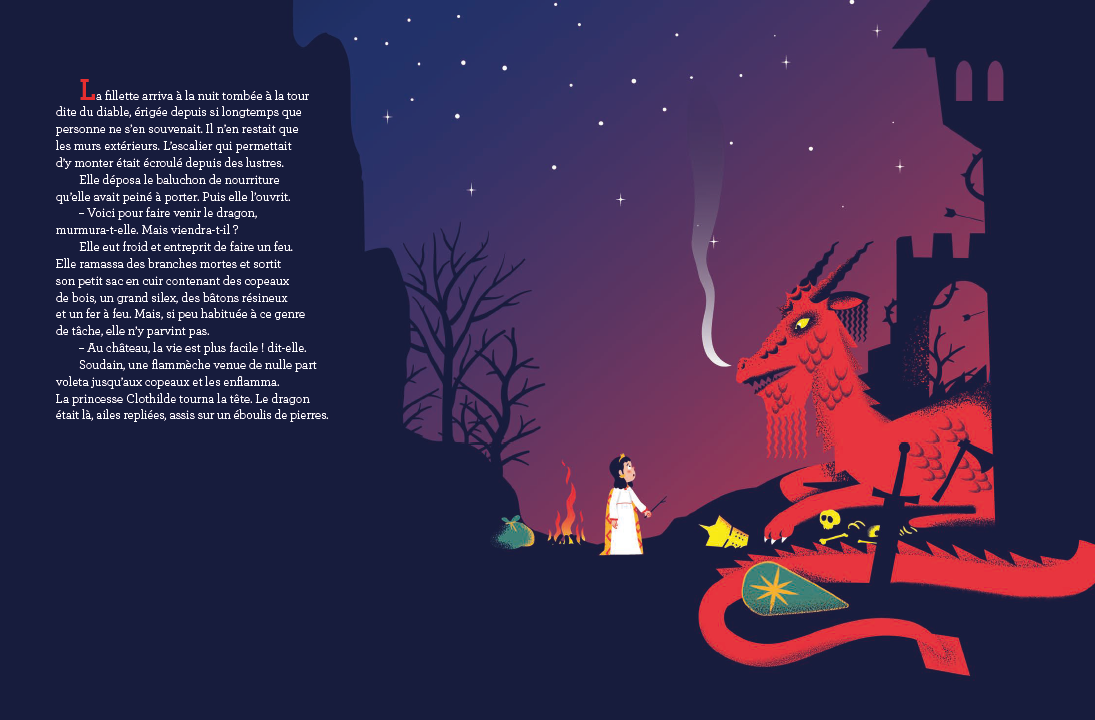 부유하고 평화로운 왕국에 어느 날 드래곤이 나타났습니다! 왕은 드래곤을 물리치기 위해 최고의 군사들을 보냈지만 모두 실패하고 맙니다. 결국 왕은 왕족의 혈통만이 드래곤을 달랠 수 있다는 믿음으로 딸 클로틸드 공주를 파견합니다. 충직한 조력자 '회색 기사'와 함께 길을 떠난 공주.