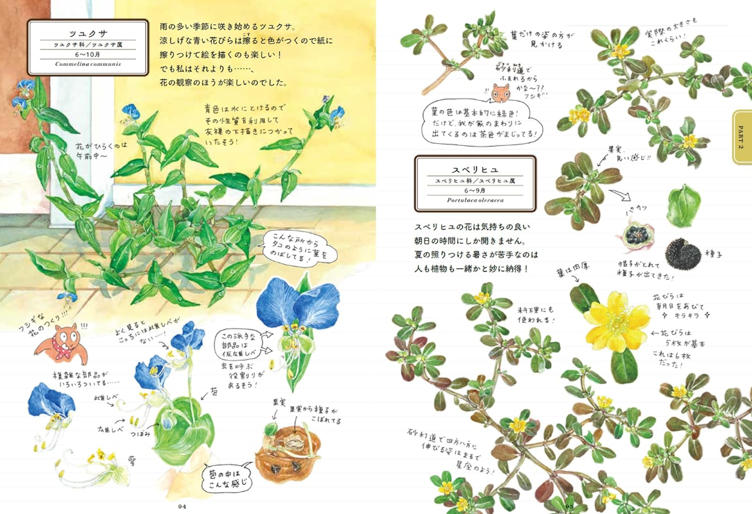 여기, 마치 소중한 사람의 비밀 일기장을 훔쳐보는 듯한 다정한 식물 노트가 있습니다. 식물 판화 작가 야하라 유우코가 직접 발로 뛰며 그려낸 정밀한 수채화 일러스트는 사진이 담아내지 못하는 식물의 숨결까지 담아냈습니다.