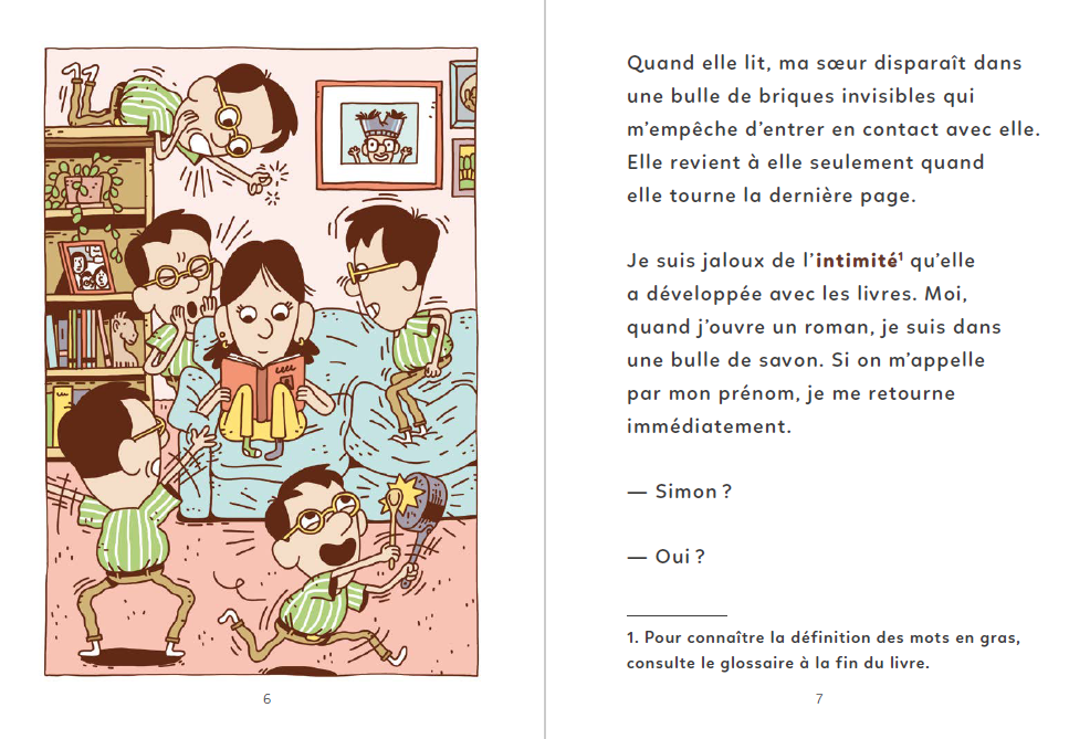 아홉 살 소년 시몬은 지금 매우 낙담해 있습니다. 학교 숙제로 소설책 한 장을 통째로 읽어야 하지만, 책만 펼치면 시몬의 생각은 실 끊어진 연처럼 저 멀리 둥둥 떠다니기 때문입니다. 누나처럼 책 속에 푹 빠져들고 싶지만, 시몬의 시선은 자꾸만 창밖의 구름이나 나무 위의 새들에게로 달아납니다.