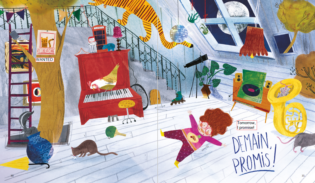 드디어 오늘, 필로는 결연하게 책상 앞에 앉으려 하지만 방 청소를 시작으로 11시 11분 소원 빌기, 주키니 머핀 먹기, 거실에서 혼자 있는 엄마와 놀아드리기 등 새로운 방해 요소들이 끊임없이 나타납니다. 급기야 친구들과 마당에 나무집을 지으러 나간 필로는 겨울이 오기 전 이 날씨를 즐기는 것이 ‘범죄를 저지르지 않는 길’이라며 정당화하기에 이릅니다. 해가 저물어가는 시간, 필로는 과연 “내일은 꼭 할거야!”라고 말하는 대신 포스터를 완성할 수 있을까요?