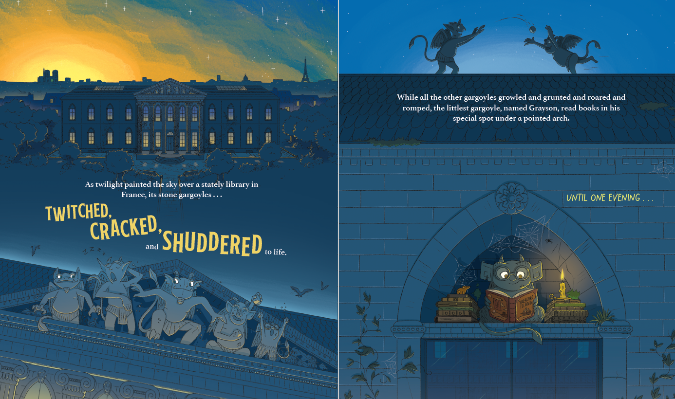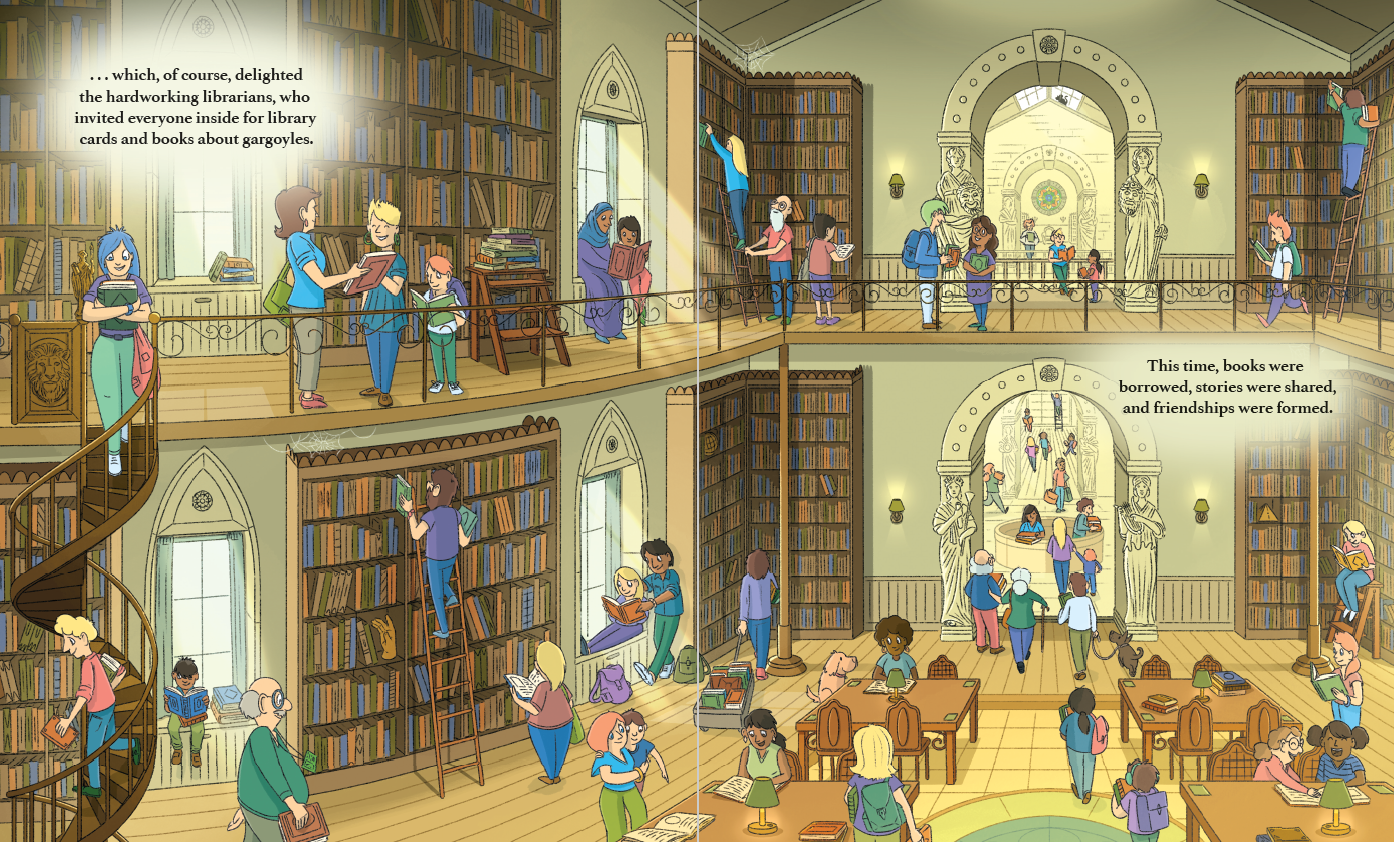 "도서관 지붕 위에 앉아 사람들을 지켜보던 괴물 석상 그레이슨이 발길이 끊긴 도서관을 구하기 위해 벌이는 기발하고 유쾌한 커뮤니티 회복 프로젝트"