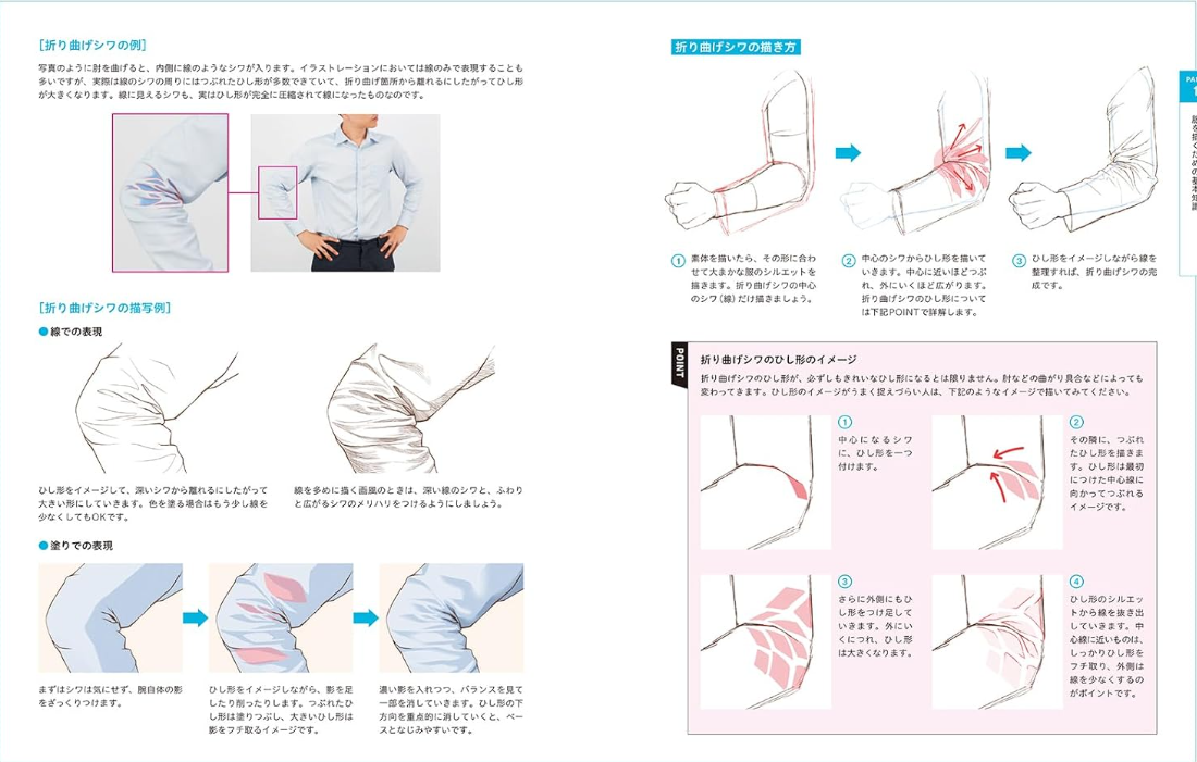 제1부에서는 의상의 구조, 실루엣 잡는 법, 주름의 원리, 소재별 표현 기법 등기초를 탄탄하게 다지며, 작가들이 흔히 겪는 고민을 해결해 작화력을 한 단계 끌어올립니다.