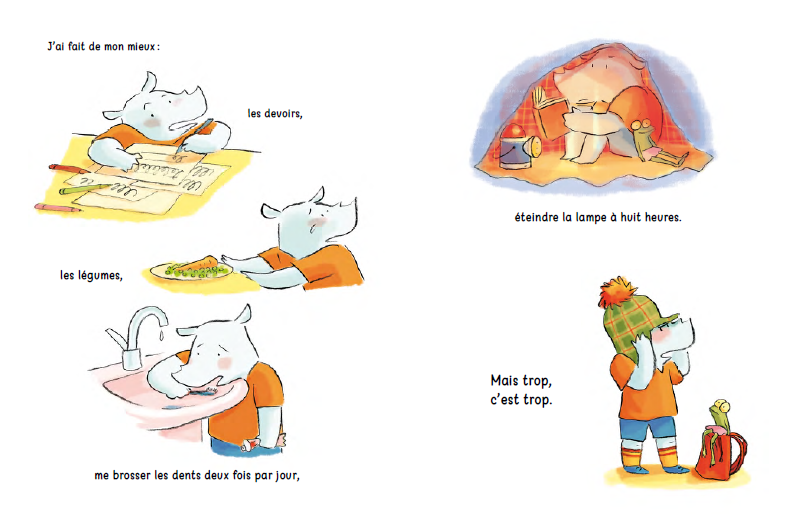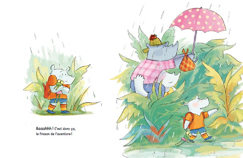 씻기나 이 닦기 같은 매일의 규칙에 지친어린 코뿔소 조니가 독립을 선언하며 뒷마당으로 모험을 떠나는 이야기입니다. 조니는 씩씩하게 떠났지만, 부모님은 보이지 않는 곳에서 우산과 간식을 챙겨주며 아이의 독립심을 따뜻하게 지켜봐 줍니다. 부모의 지지 속에서 성장하는 아이의 심리를 유머러스하게 묘사하여 3~5세 아이와 부모가 함께 읽기 좋습니다.