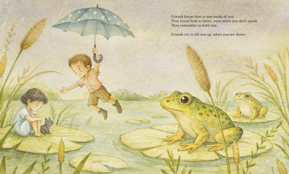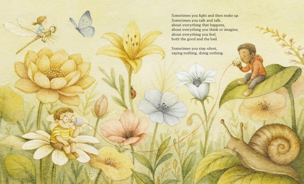 안데르센상 수상 작가 루카 토르톨리니와 서정적인 화풍의 파올로 프로이에티가 만나 우정이라는 보이지 않는 유대감을 탐구합니다. 친구와 함께하는 일상의 놀이와 모험은 시간을 반짝이게 만들고, 우리를 새로운 세상으로 이끌어줍니다. 사소한 다툼부터 커다란 발견까지, 우정은 웃음소리뿐만 아니라 함께 나누는 침묵 속에서도 피어날 수 있음을 보여줍니다.