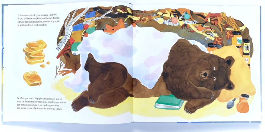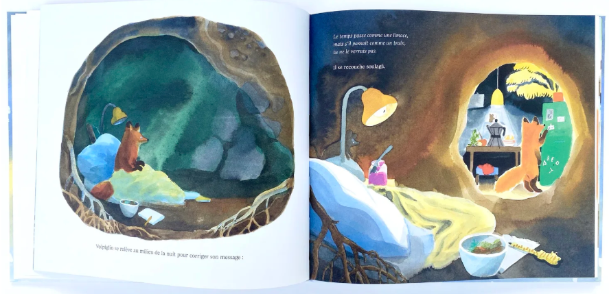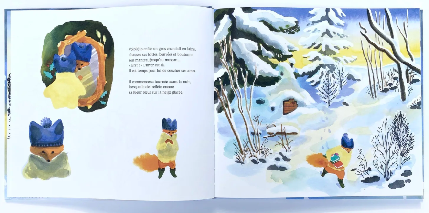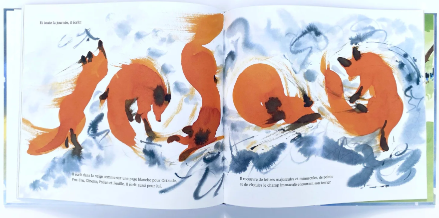 어느 날 아침, 온 세상을 하얗게 덮은 신선한 눈은 볼필리오에게 커다란 빈 도화지가 되어줍니다. 그는 눈 위에 마음속에 떠오르는 단어들을 적어 내려가며 외로움을 달래고, 매일 아침 새롭게 쌓이는 눈 위에 자신만의 창의적인 영감과 언어 유희를 펼쳐 보입니다. 줄리아 우아니에의 매혹적이고 생동감 넘치는 잉크화는 타인을 돌보는 마음의 숭고함과, 고독을 예술로 바꾸는 여우의 내면세계를 아름답게 시각화하여 보여줍니다.
