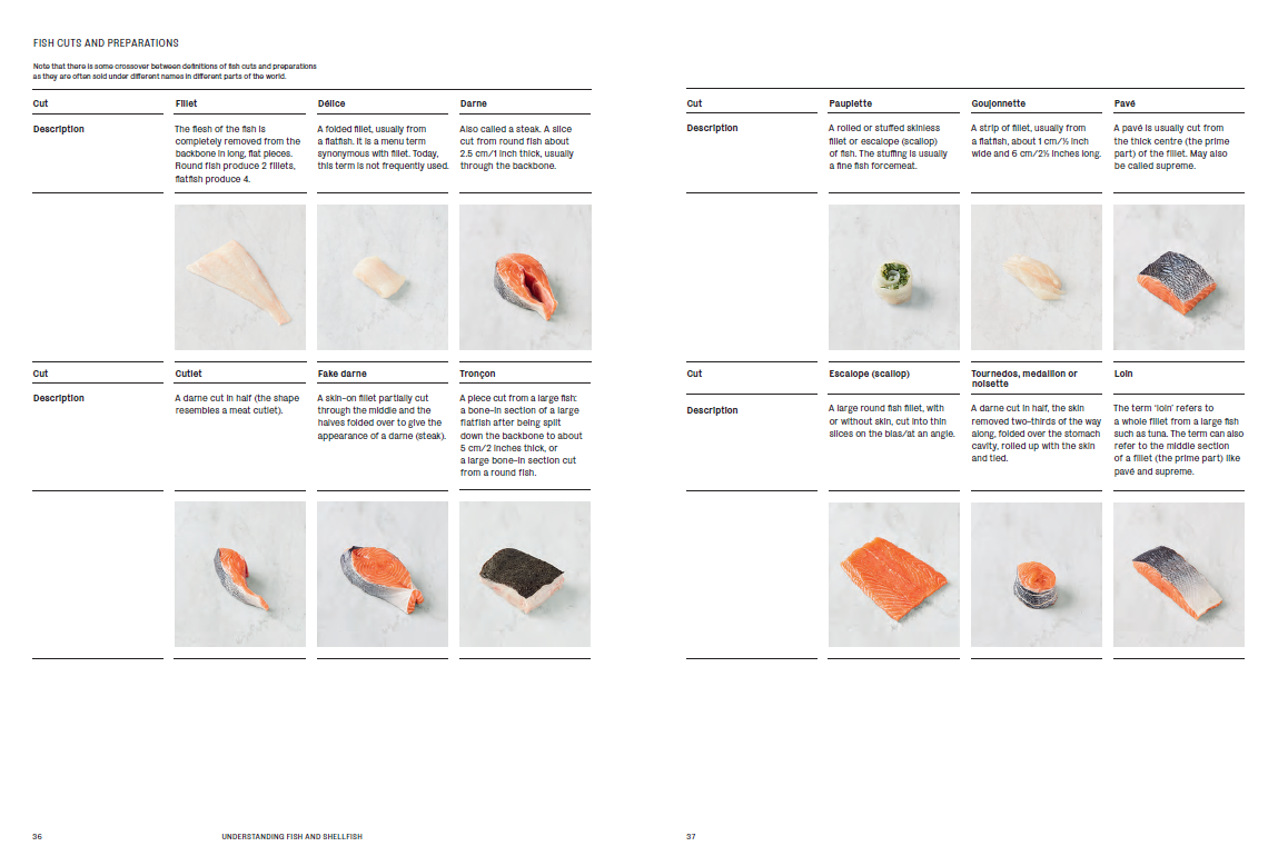 1권: 스톡, 소스 및 수프 (Stocks, Sauces and Soups) 2권: 달걀 및 유제품 (Eggs and Dairy) 3권: 생선 및 패류 (Fish and Shellfish) 4권: 육류, 가금류 및 가창새/야생 육류 (Meat, Poultry and Game) 5권: 채소, 곡물 및 두류 (Vegetables, Grains and Pulses) 6권: 제과, 제빵, 당과 및 디저트 (Pastry, Baking, Confectionery and Desserts) 7권: 주방 핸드북 (장비, 도구 관리, 안전, 용어 사전, 단위 변환 및 통합 색인) |